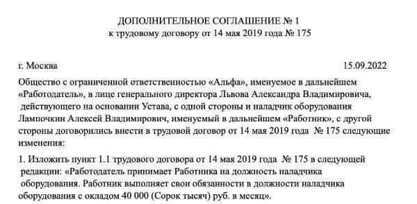 Правовые основания для изменения оклада в трудовом договоре